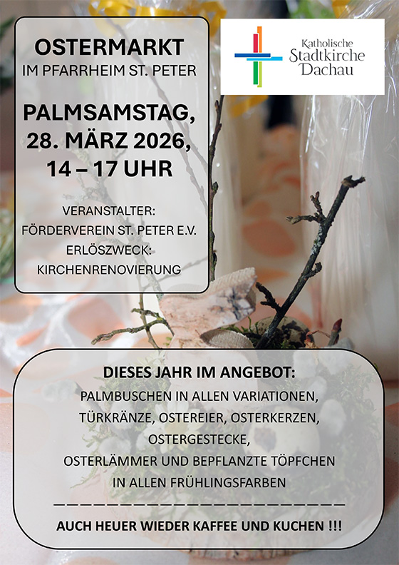 Herzliche Einladung zum Ostermarkt in St. Peter am Palmsamstag, dem 28.03.2026 von 14 - 17 Uhr im Pfarrheim St. Peter