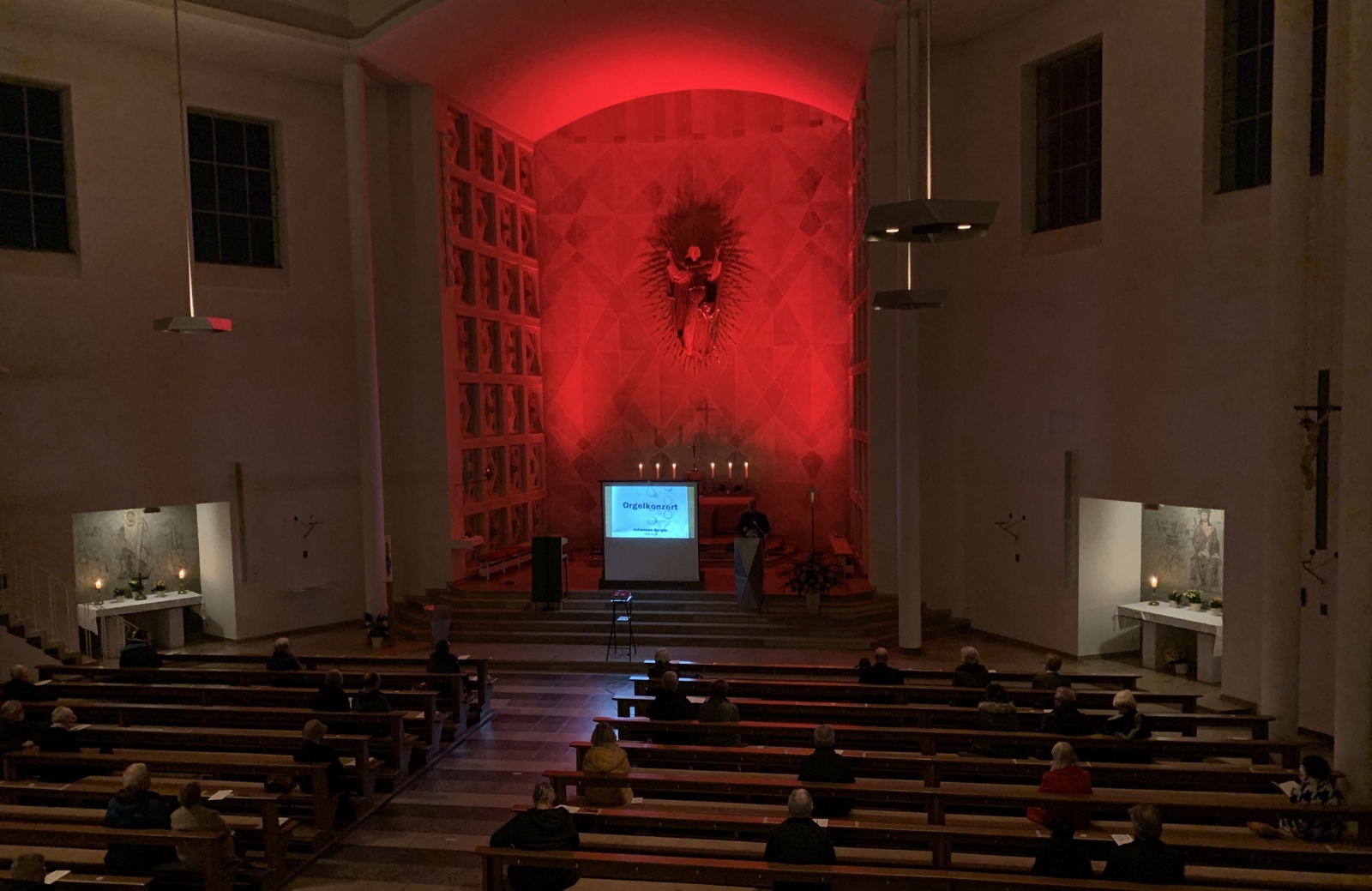 Orgelkonzert in Mariä Himmelfahrt Dachau am Samstag, 24.10.2020, um 19 Uhr - bei freiem Eintritt. Und zum Ohrenschmaus gesellte sich an diesem Abend zum ersten Mal auch eine Augenweide.