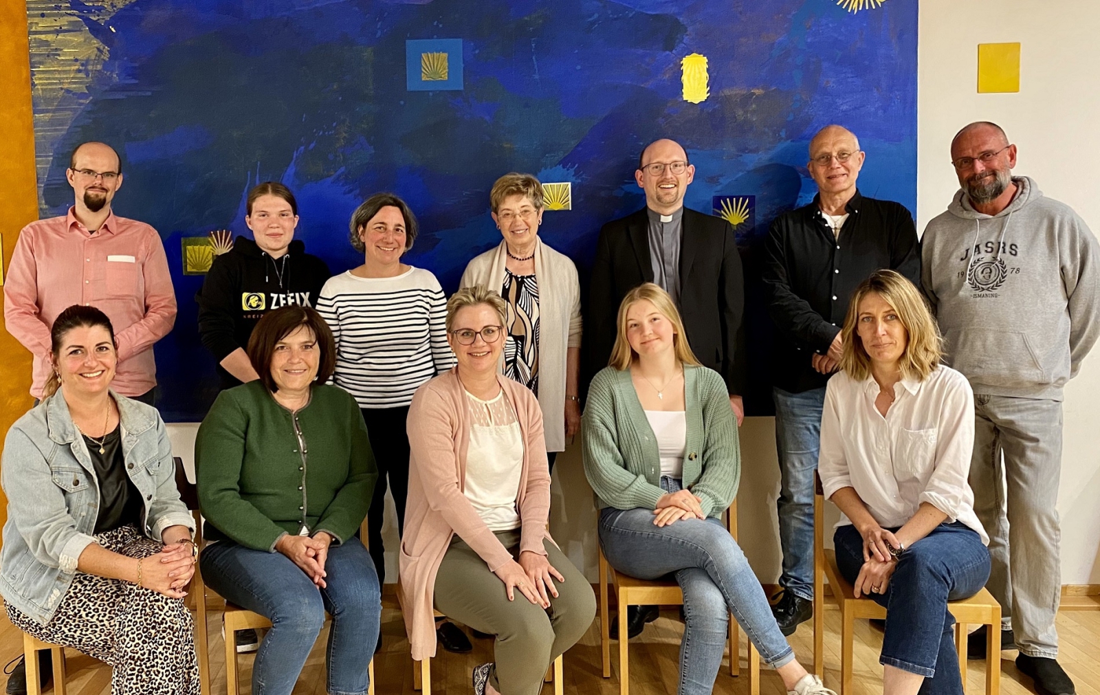 Zu seiner ersten Arbeitssitzung traf sich am Dienstag, 24. Mai 2022, der neue Pfarrgemeinderat St. Jakob. Nachdem die umfangreiche Tagesordnung erfolgreich besprochen war, rückte man zum Gruppenfoto zusammen.