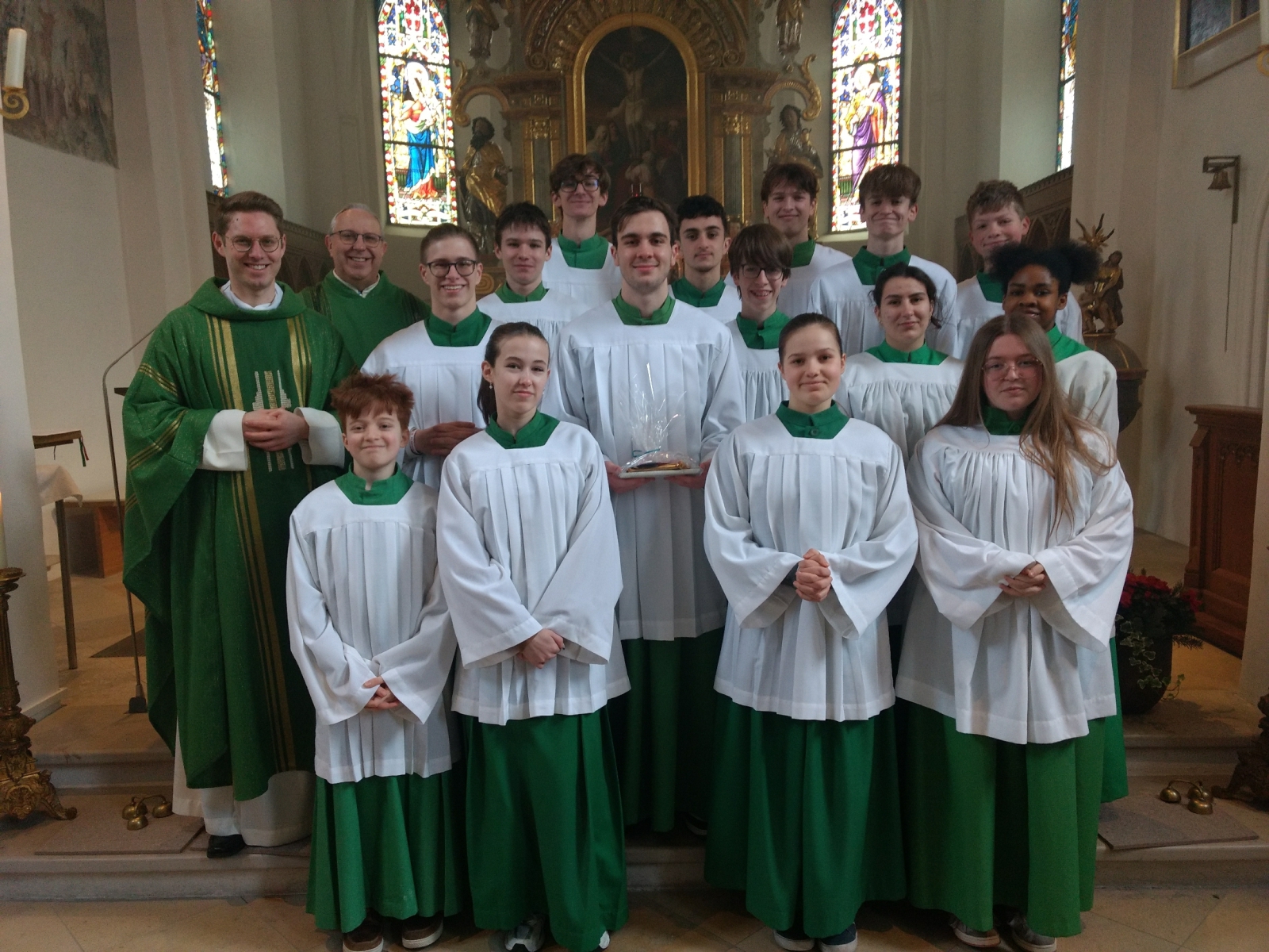 Ganze fünfzehn Ministranten bildeten eine imposante Kulisse für eine Veränderung im Ministrantendienst in der Pfarrkirche Mitterndorf: Feierlich wurde Benedikt Hunseder in sein neues Amt als Oberministrant eingeführt...