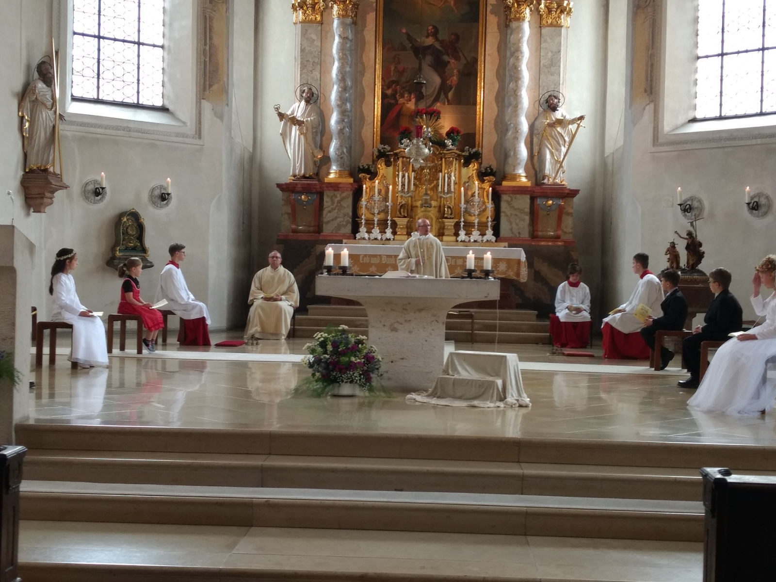 Nach zwei Monaten Verzögerung konnten nun endlich die Erstkommunionkinder aus der Pfarrei Mitterndorf an einem sonnigen Samstagmorgen in zwei Gruppen ihr großes Ereignis des ersten Empfangs des Leibes Christi begehen.