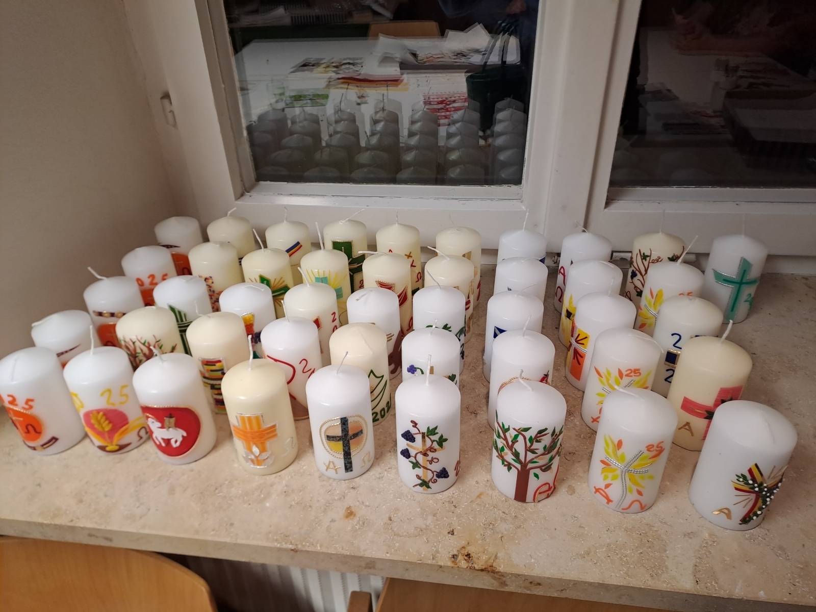 Am letzten Donnerstag nach der Kreuzwegandacht trafen sich fleißige Damen um für Ostern Kerzen zu gestalten.