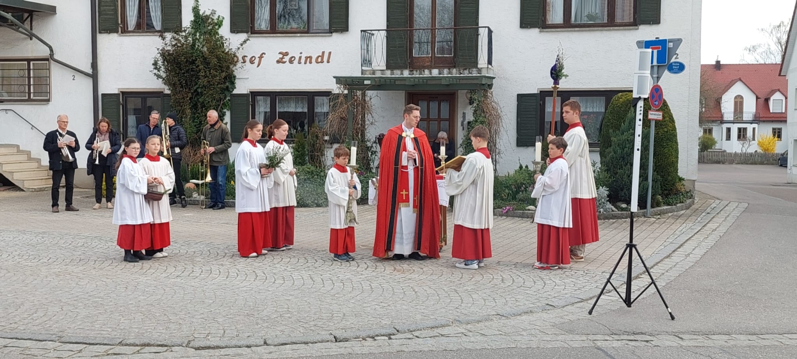 Traditionell begann auch dieses Jahr der Gottesdienst am Palmsonntag wie gewohnt am Pellheimer Maibaum.