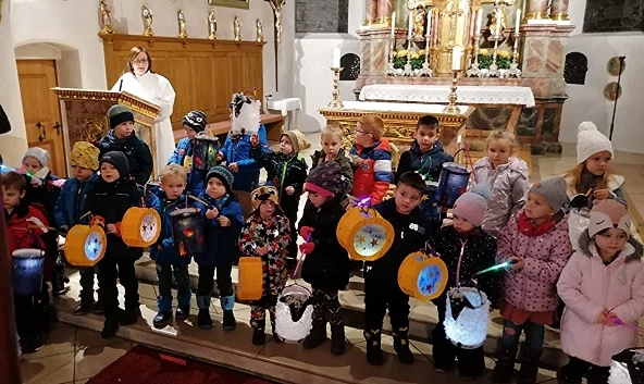 So wie hier am 12.11.2019 in St. Ursula Pellheim haben zwischen dem 8. und 12. November wieder in jeder unserer vier Pfarreien und in und mit jeder Kindertagesstätte 'Sankt-Martin-Feiern' stattgefunden. Gemäß dem Liedtext von Elke Bräunling nehmen sich die Kleinen nun vor, ihr Verhalten zu überdenken: